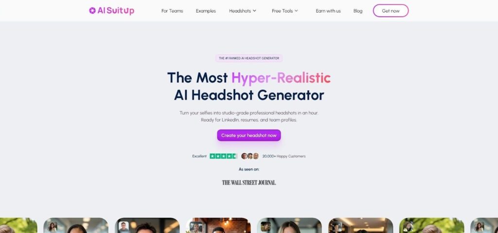 Upload 10–15 selfies, pick scene templates like “Keynote Presentation,” “Team Huddle,” or “Modern Office Hallway,” and wait about one hour. SuitUp then returns roughly 40 images, some tight headshots, others waist up or full length, so your press kit, speaker page, and LinkedIn banner can all share a cohesive look.
