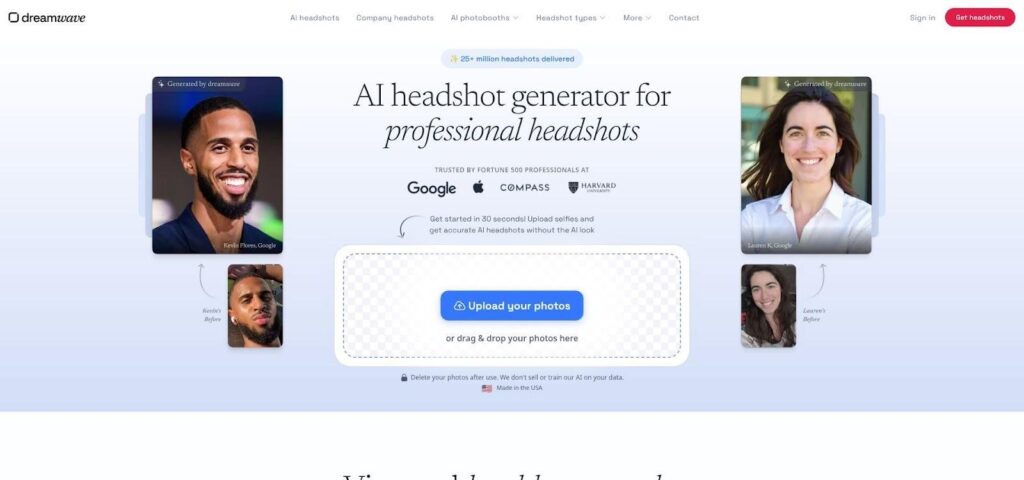 Dreamwave AI creative professional headshot backdrops screenshot