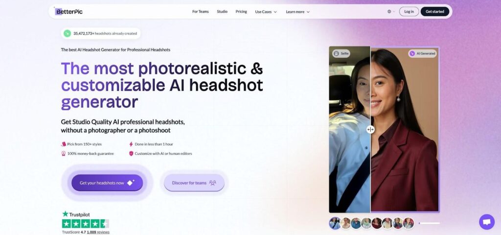 BetterPic AI headshot generator with 4K and human retouch screenshot
